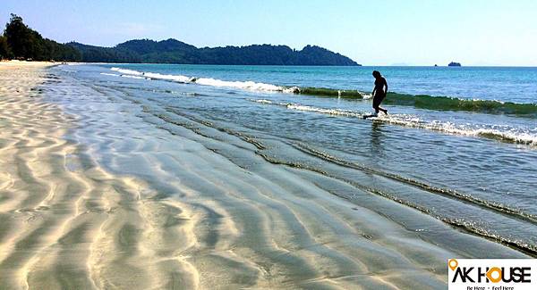 Aow Yai海灘這裡的沙岸是彩色的,伴隨著海水的退潮,細細的粉末狀的沙,被海水沖出一層一層的堆積狀,在夕陽照映下,真的很美。海灘非常平緩,海水超級清藍,幾乎是沒有汙染的。