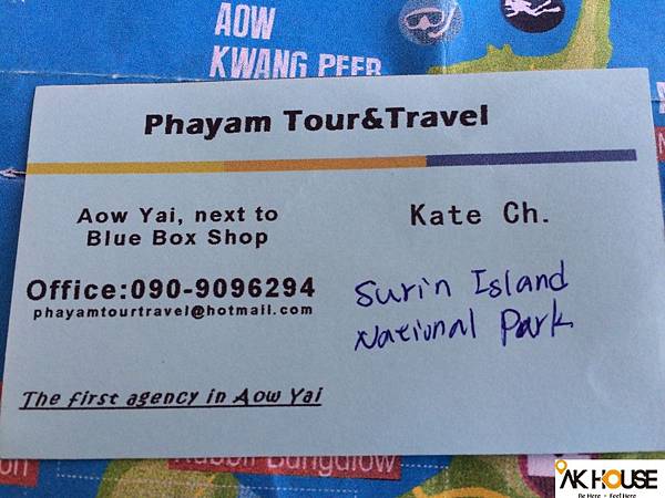 Eileen原本要參Surin Island National Park國家公園的tour,這是島上最有名的TOUR,也是最貴的,一個人要2600泰銖。但該行程並不是每天開團,因為觀光客不多,要集到足夠的人數才會開團。
