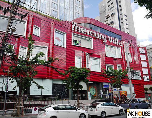 曼谷市中心的Chit Lom(奇隆)地區,辨公大樓、百貨公司仳鄰而立;The Mercury Ville這棟大樓2014年底開幕,鮮紅色不對稱的建築物,遠遠的就可以一眼辨識出來,成為曼谷市中心的新地標之一。更可以直接和空鐵BTS相通,非常方便。