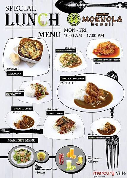 (此張照片取材自MOKUOLA官方FB,Mercury Ville分店在平日中午的商業午餐從180銖起跳)