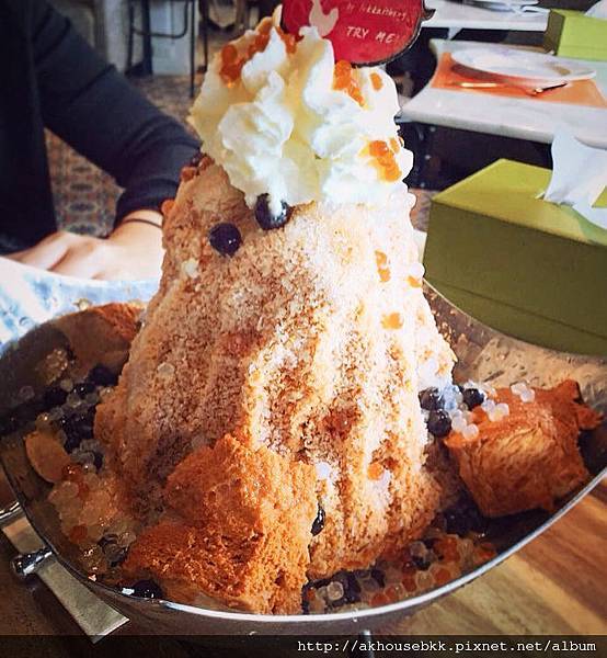 泰式奶茶剉冰。295銖。上桌的時候下面會冒乾冰,氣勢十足。這道是很多泰國年輕人來此必點的冰品。