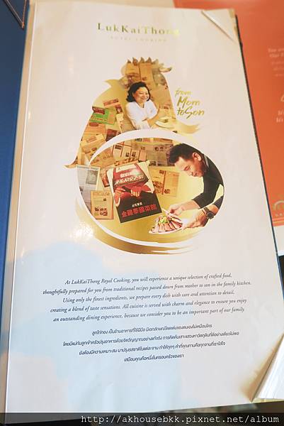翻開菜單查看餐廳故事,由廚藝精湛的母親與兒子聯手打造的餐廳。