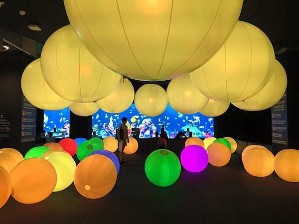 在這一區,參觀者可以在空間中感受移動的錯覺,你可以用身體觸碰不同大小的球,你會發現空間裡的燈光、音樂都會跟著改變。