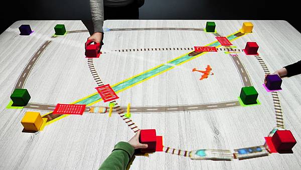 只要移動積木方塊,就會變化出城市中的車道、鐵路、機場跑道…,很有小小世界的趣味。