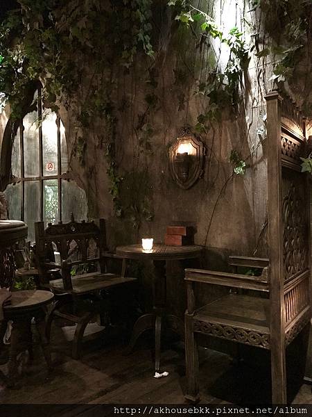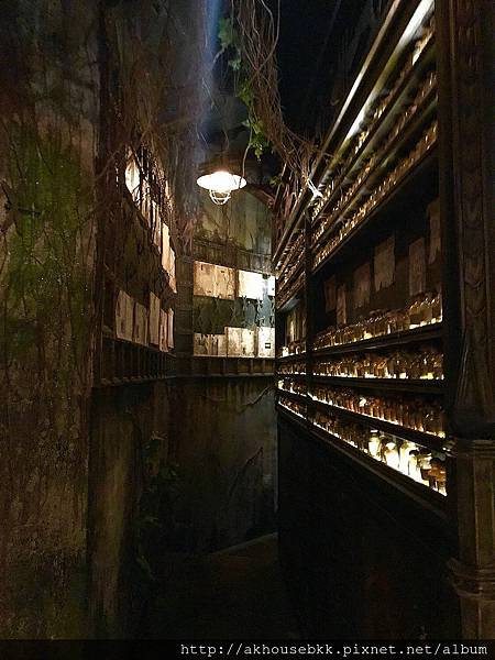 裝潢很有歌劇魅影那種詭異神秘的感覺,要經過魔幻的書櫃通道,才能進入用餐區,又有點暗黑童話故事的fu,感覺吃一吃會有巫師或巫婆跑出來!裡頭也有密室包廂!